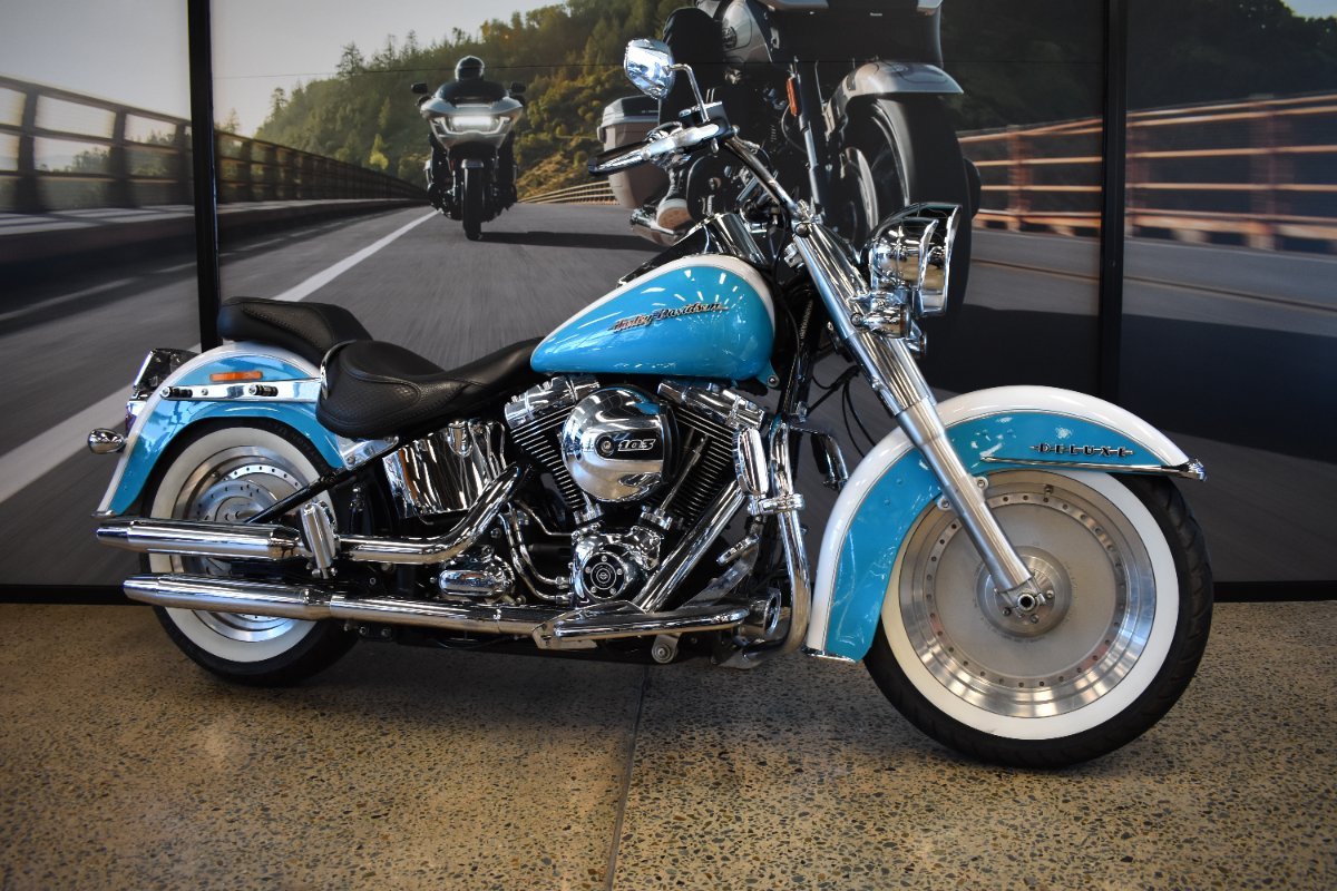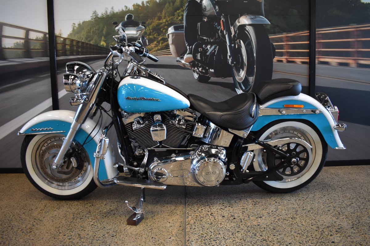 2016 FLSTN Softail Deluxe in Crushed Ice Pearl/ Frosted Teal Pearl. This is a genuine Australian delivered Softail Deluxe with beautiful factory White & Teal pearl paint! This bike presents very well, and has been fitted with S&S tapered turbo slip on mufflers, chrome headlight & driving light trim, OEM Fat Boy solid wheels, a chrome engine bar with highway pegs, and an upgraded pillion pad for added passenger comfort! ^^Call us today to Test Ride this bike and ask us about our Competitive Finance Options. We can help arrange Specialized, Insured freight to anywhere in Australia.............We are a one stop shop and with a huge range of Accessories on site, Competitive and Quick in-store Finance, Insurance and Motorcycle Protection Plan available. With the largest range of Pre-Owned Harley?s in Queensland we have a Harley-Davidson to suit your budget, and Welcome all Trades. Our Pre-Owned Motorcycles are thoroughly Workshop Inspected to give you the peace of mind you require when purchasing you Dream Harley-Davidson.